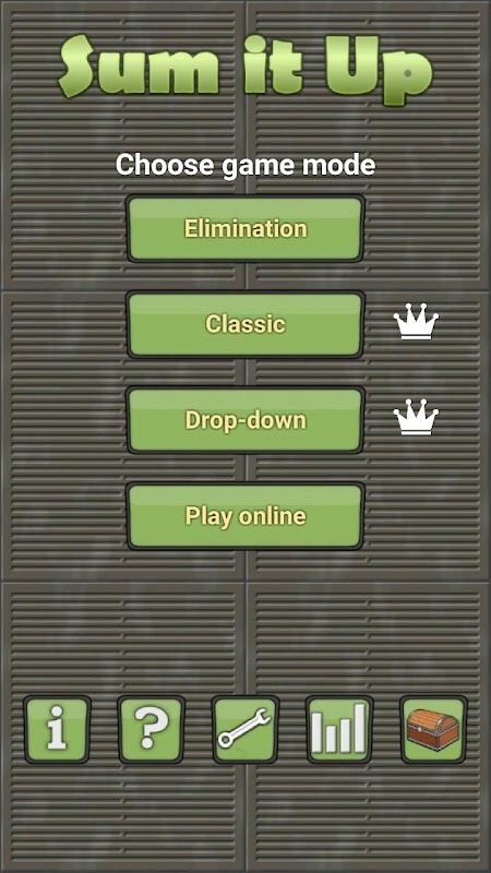 Sum it Up is a number puzzle where you count in your head and eliminate blocks. You will play using regular blocks with numbers, bombs, lasers, negation blocks and more. The objective in the game is to drag to select chains of blocks that match specified sums. In Sum it Up you are challenged with over 100 levels with puzzles of increasing difficulty. You can also play the game in classic mode where the number board is kept constantly filled, or you can play in drop-down mode where you should try to keep the board as clean as possible while blocks keep falling from the top. Longer sums give higher score in all three game modes.