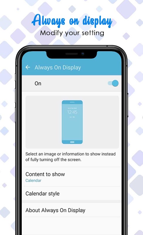 اس کے علاوہ ، کسی تاریک جگہ پر الرٹ رہنے کے ل edge ایج لائٹنگ لگائیں ، ایپ میں ہمیشہ ڈسپلے وال پیپر موجود ہوتے ہیں جو اسکرین کو زیادہ سے زیادہ مدھم رکھنے کے لئے بنائے جاتے ہیں اور پھر بھی خوبصورت ڈیزائن اور نمونوں کی نمائش کرتے ہیں۔