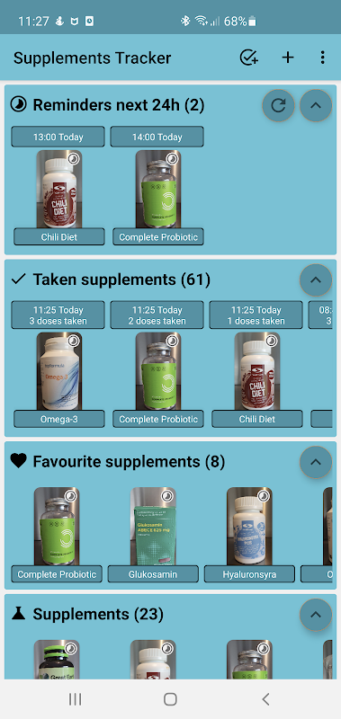 سپلیمنٹس کا ٹریکر آپ کو سپلیمنٹس اور / یا دوائیوں کی مقدار کو یاد رکھنے اور ریکارڈ کرنے میں مدد کرتا ہے۔ آپ آسانی سے نئے سپلیمنٹس شامل کرسکتے ہیں اور انہیں کسی QR- کوڈ سے مربوط کرسکتے ہیں جس صورت میں ایک بھی اسکین آپ کو انٹیک انٹیک رجسٹر کرنے دیتا ہے۔