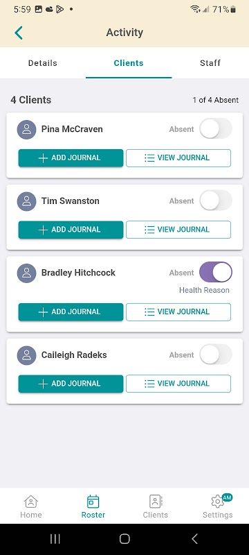- کلائنٹ کی حاضری کو نشان زد کریں۔