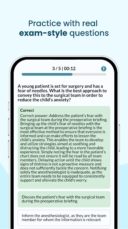 سرجری اور سانس کے امتحان کی تیاری آپ کے NBSTSA CST، CSFA، اور NBRC CRT، RRT امتحانات کی تیاری کا سب سے موثر اور پرکشش طریقہ ہے۔ ذاتی نوعیت کے پریکٹس سوالات کے ساتھ مطالعہ کریں، مطالعہ کے اہداف طے کریں، اور نیشنل بورڈ آف سرجیکل ٹیکنالوجی اینڈ سرجیکل اسسٹنگ (NBSTSA) اور نیشنل بورڈ فار ریسپیریٹری کیئر (NBRC) کے 2025 اور 2026 کے لیے تازہ ترین رہنما خطوط کے مطابق تفصیلی وضاحتیں دریافت کریں۔