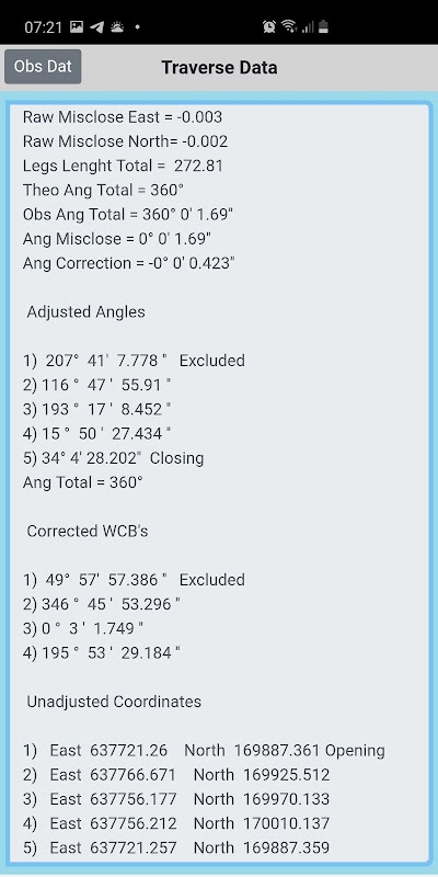 اس ایپلی کیشن کا بنیادی ڈیزائن آن سائٹ انجینئرنگ سرویئرز کے لئے ہے کہ ہاتھ سے بکنے والے زاویوں اور فاصلوں سے ٹراورس ڈیٹا کا حساب کتاب کیا جائے جس کا حساب کتاب کو جلدی اور واضح طور پر حتمی اسٹیشن کوآرڈینیٹ میں لگایا جاسکے۔ زاویوں کے لئے پٹ کی اکائییں یہ ہیں: ڈگری ، منٹ اور سیکنڈ جیسا کہ حسابی اعداد و شمار کی پیداوار ہوتی ہے۔ کوآرڈینیٹ ڈیٹا ان پٹ بطور (برطانیہ) ایسٹنگز اور نارنگس ہے جیسا کہ کوارڈینیٹ ڈیٹا کی پیداوار ہے۔ ایپلیکیشن ایک آسان اوپن ٹرورس یا زیادہ پیچیدہ بند ٹریورس دونوں کے لئے ڈیٹا کا حساب لگاتا ہے۔