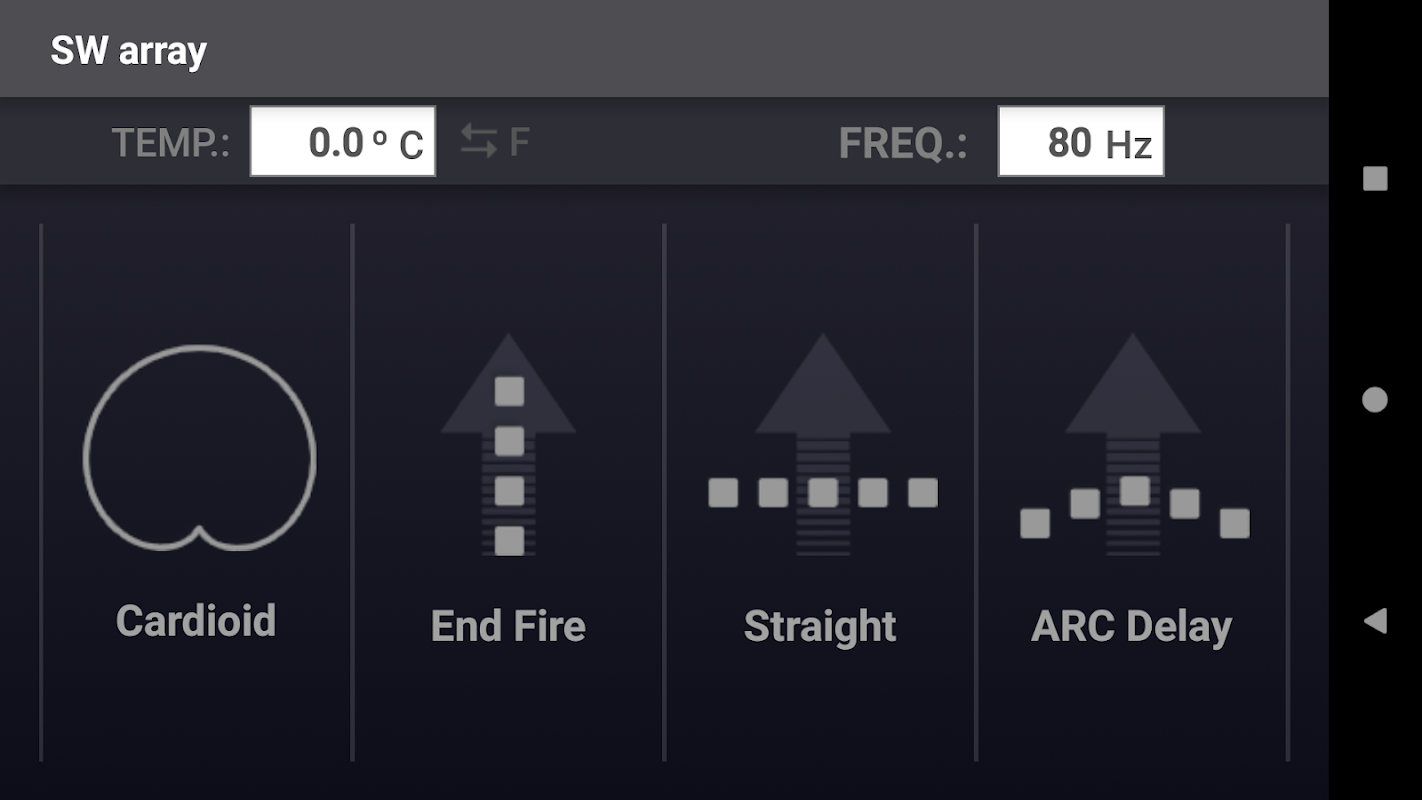 SW array faz os cálculos dos arranjos: Cardioid, End Fire , Straigth, ARC Delay