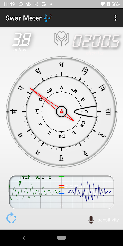 - ہندوستانی کلاسیکل میوزیکل پیمانے پر ریئل ٹائم میں 12 میوزیکل نوٹ / سوارا۔