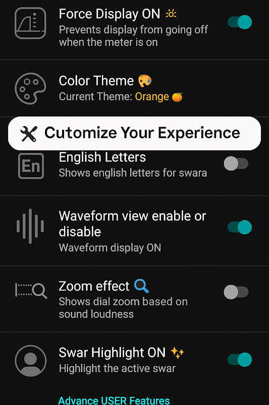 - ہندوستانی میوزک کے موڈ کے ل any کسی بھی آلے کی ٹوننگ۔