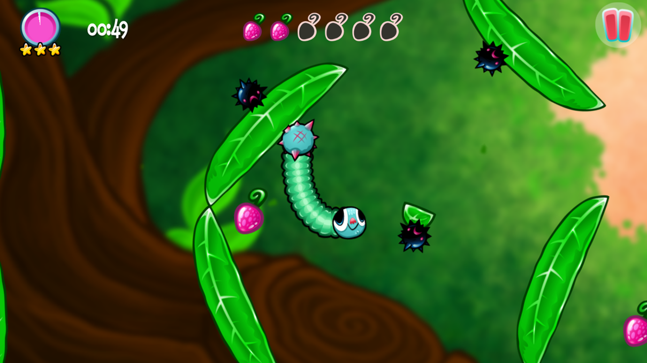 Swingworm features unique controls. Swingy's head and tail will tenaciously grab surfaces, and his stretchy body allows him to reach surprisingly far. It's a race against time as Swingy gathers Rubbaberries to pay the Big Bug for an elevator ride further up the tree.