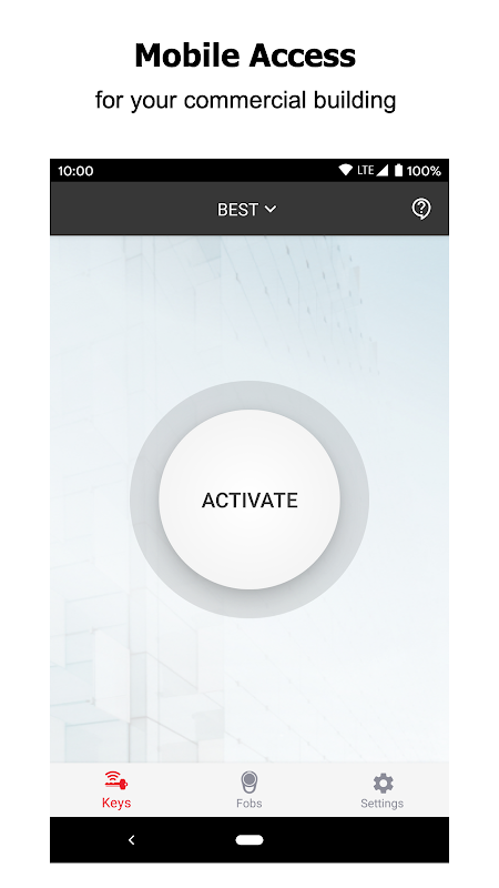 Switch™ Mobile Access brings access control to commercial locks and hardware transforming doors, cabinets, and more into Bluetooth enabled smart locks. If your building or security system has installed Switch™ Tech then download this app and request a registration key the system administrator to receive your access. Simply tap the activate button, touch the Switch™ Core to wake, and twist just like you would a mechanical key once you see a green light.