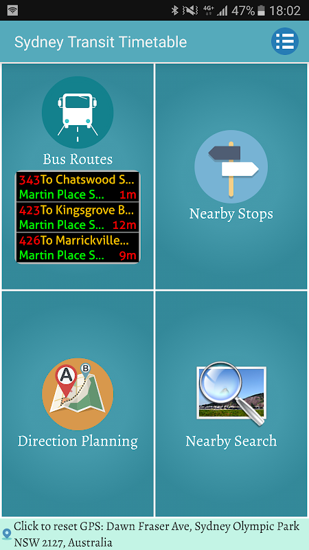 ریڈ ٹائم پیشن گوئی برائے سڈنی بس ، ٹرام ، قریبی پی او آئی تلاش ، سمت منصوبہ بندی
