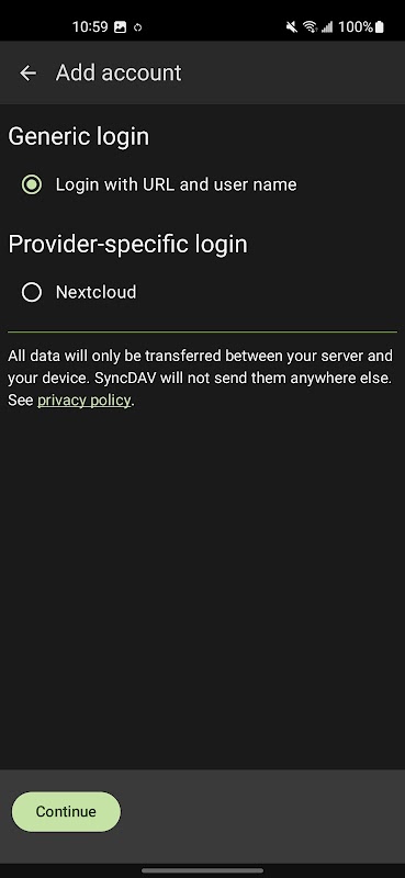 یہ ایپ نیکسٹ کلاؤڈ اور محفوظ HTTPS WebDAV سرورز کے ساتھ ہم آہنگی کو سپورٹ کرتی ہے۔