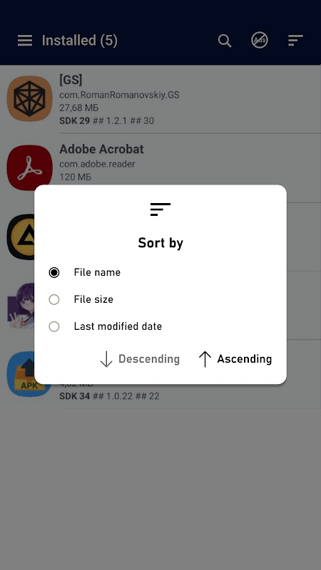 • ایپ کی تفصیلی معلومات دیکھیں: نام، پیکیج ID، سائز