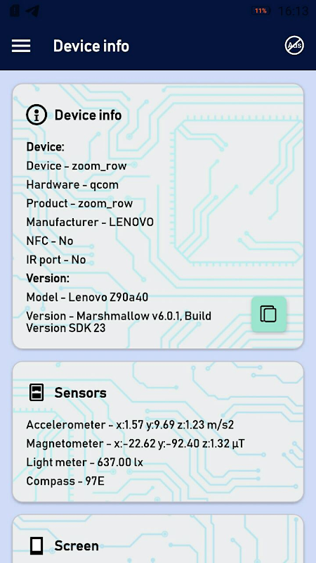 • تفصیلات ڈسپلے کریں: ریزولوشن، اسکرین کا سائز، کثافت (dpi)