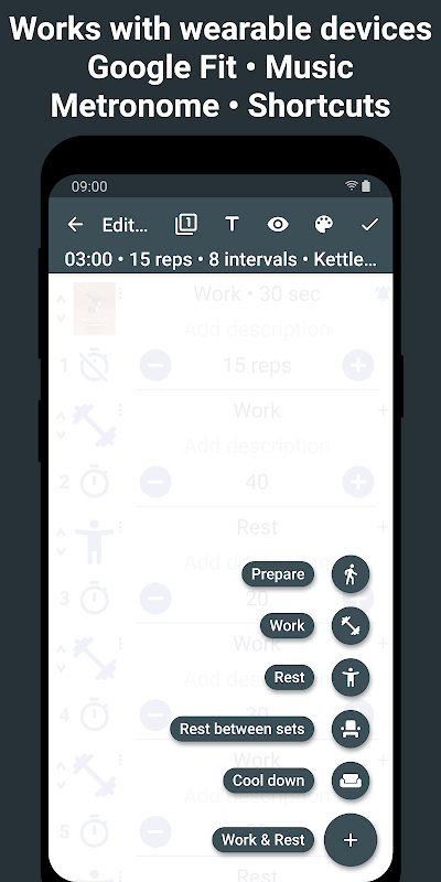 🕓 آپ وقفوں اور سیٹوں میں تفصیل شامل کر سکتے ہیں جو ٹائمر اسکرین پر ظاہر ہوں گے اور آواز دی جائے گی۔