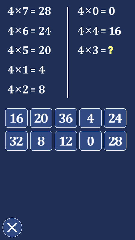 Table4x ایپلی کیشن مفت ہے لیکن ضرب جدول کو 4 سے کام کرنے اور یاد رکھنے کے لیے بہت موثر ہے۔ نیا ڈیزائن، نئے گیمز، نئی اینیمیشن۔ اب، Table4x ایپلی کیشن 5 گیمز پیش کرتی ہے: