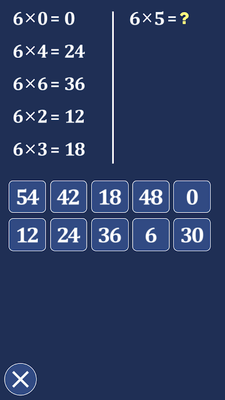کام کرنے، حفظ کرنے یا جانچنے کے لیے ابھی Table6x ایپلیکیشن ڈاؤن لوڈ کریں، چند منٹوں میں، 6 سے ضرب کی میز کے بارے میں آپ کا علم۔
