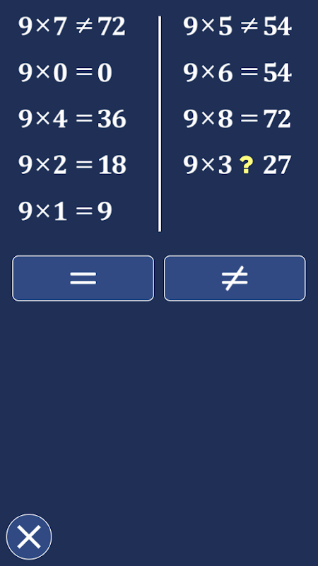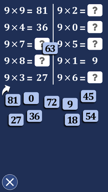 کام کرنے، حفظ کرنے یا جانچنے کے لیے ابھی Table9x ایپلیکیشن ڈاؤن لوڈ کریں، چند منٹوں میں، 9 سے ضرب کی میز کے بارے میں آپ کا علم۔