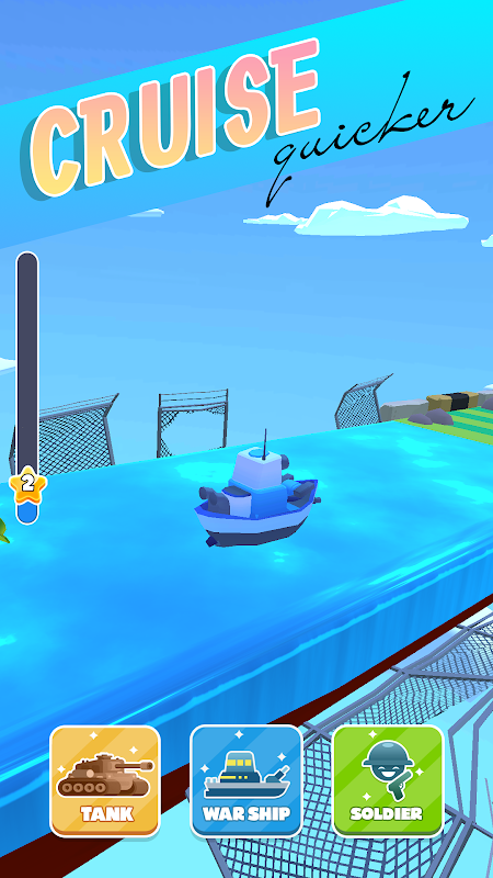 Switch between Soldier, Tank & Warship to get the shortest lap time.