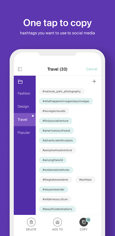 - اپنے پسندیدہ ہیش ٹیگ کو مختلف فولڈروں میں محفوظ کریں