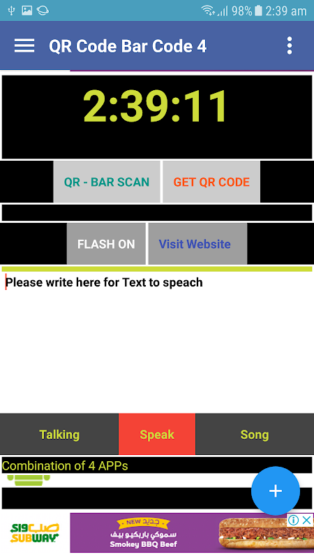 Talking QR Code Bar Code 4 QR generator text to speech flash light Talking app
