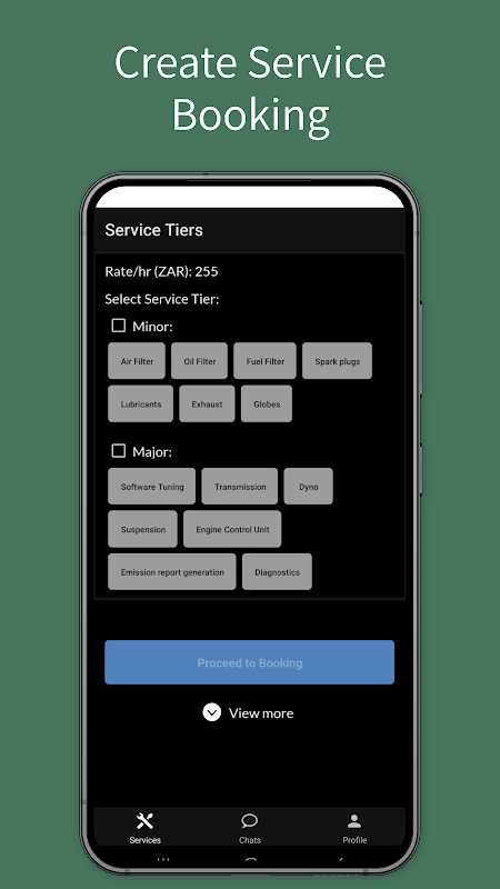1۔مطلوبہ خدمات کا انتخاب کریں (تیل کی تبدیلی، مرمت وغیرہ)
