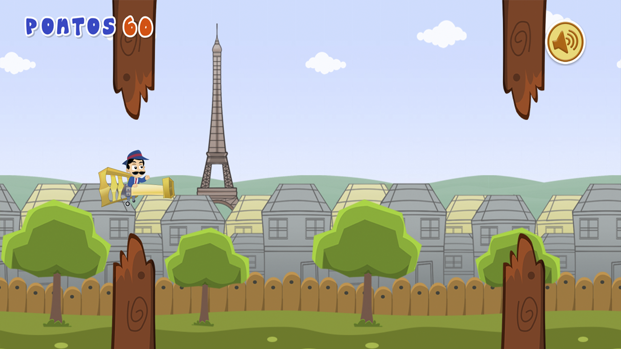 Use touches to keep the plane in the air and pass through the tree trunks...