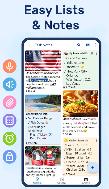 ٹاسک نوٹ، فہرستیں، یاد دہانیاں 2.9.0