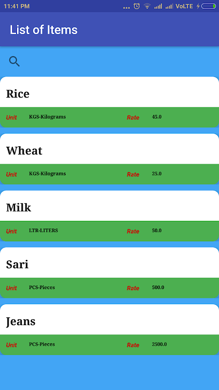 with rate and quantity of items total and grand total also.