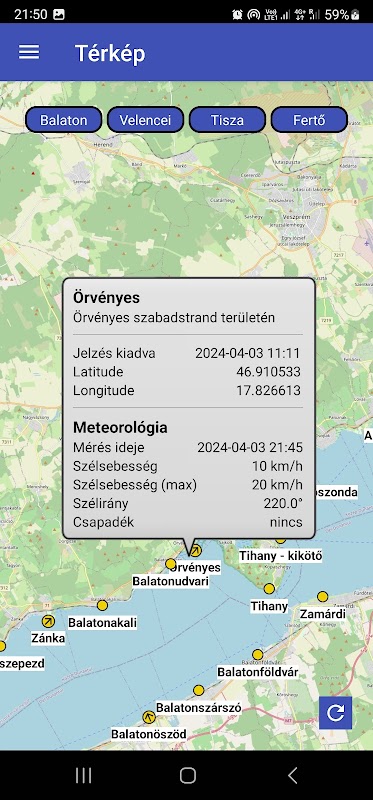 Rádiós Sélégyhívó és Infokommunikációs Egyesület (نیشنل ریڈیو ایمرجنسی اینڈ انفو کمیونیکیشن ایسوسی ایشن) کے ڈویلپرز نے اس پروگرام کا ایک ورژن تیار کیا ہے جو ہنگری کی بحری جھیلوں کے طوفان کے خطرات کے بارے میں معلومات فراہم کرتا ہے اور اسے ہماری ویب سائٹ پر مسلسل فالو کیا جا سکتا ہے۔