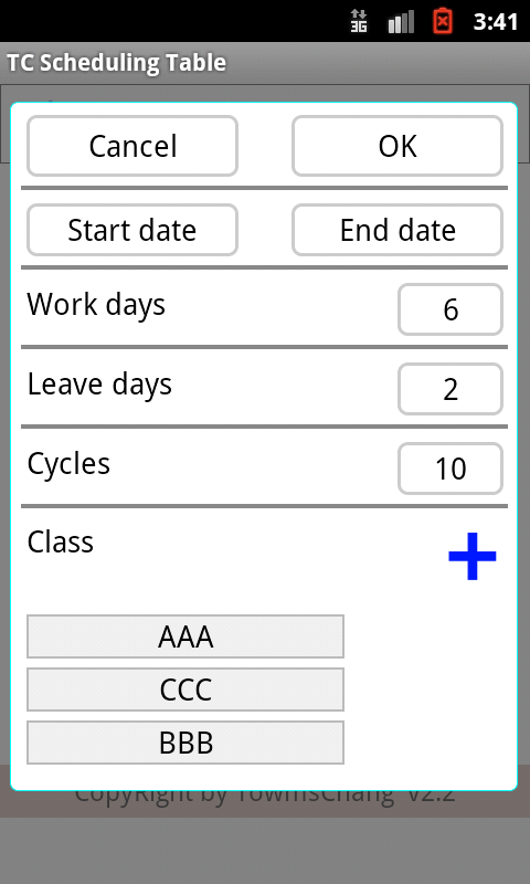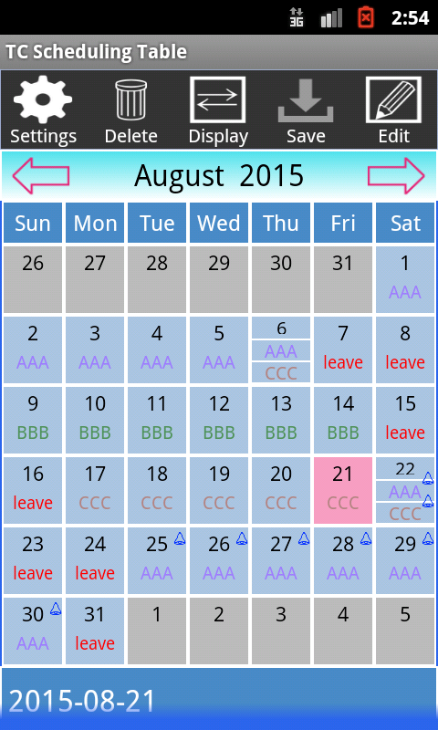 - Simple interface,Allowing you to quickly setting the entire month of scheduling table.