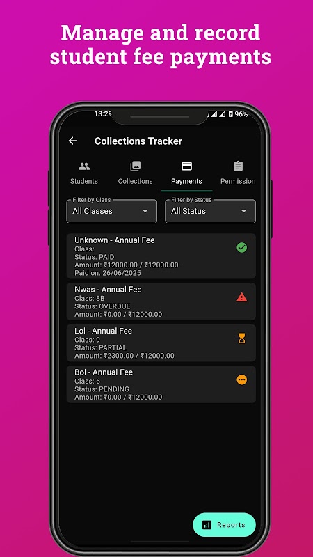 ایک جگہ پر اسکول کے واقعات اور فیس جمع کرنے کا ریکارڈ رکھیں۔