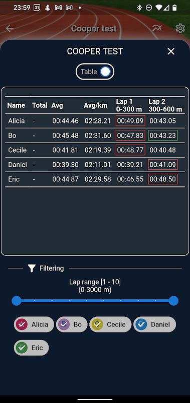 رننگ ٹریک پر پوری ٹیم کے لیے ملٹی لیپ کوپر ٹیسٹ سے لے کر ایک سے زیادہ رنرز کے لیے بیپ ٹیسٹ ٹائمنگ، جنگل کی پگڈنڈی میں اکیلی لیپس تک - آپ اور آپ کی پوری ٹیم کا ٹائمنگ ٹیم لیپ ٹائمر کے ذریعے احاطہ کرتا ہے!