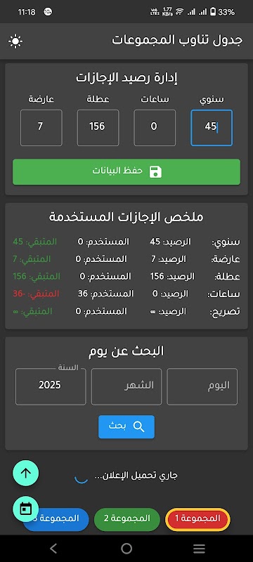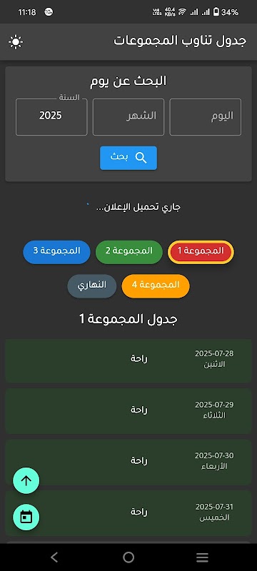 نظام بسيط لجدولة أيام العمل والراحة المتناوبة.