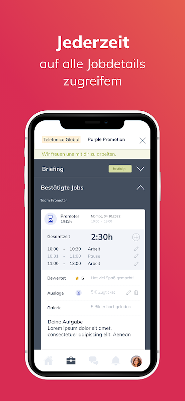 فوری طور پر درخواست دینے کے لیے نوکری کی نئی پیشکشیں دریافت کریں۔ وقت، مقام اور بریفنگ کے ساتھ اپنی تصدیق شدہ ملازمتوں کے لیے تعیناتی کی تمام تفصیلات معلوم کریں۔ اسے اپنے کیلنڈر میں منتقل کریں تاکہ آپ کسی بھی ملاقات سے محروم نہ ہوں۔