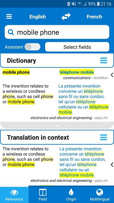 Technical dictionary & translation in 28 languages (560 languages direction):