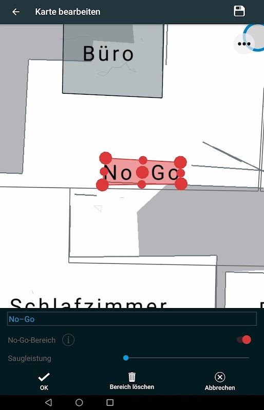 ورچوئل نو گو زونز کی مدد سے ، روبوٹ کو رہائشی علاقوں یا پورے کمروں سے دور رکھا جاسکتا ہے۔ آسانی سے کسی بھی سائز کے محدود زون کی وضاحت کریں۔