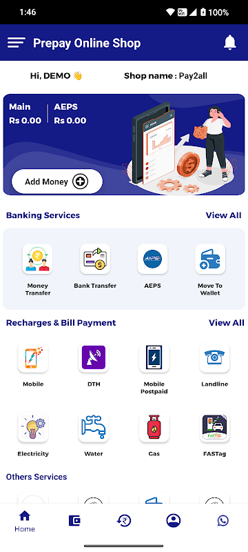 آپ کی ریچارج کی ضروریات کو پورا کرنے کے لیے ہم آپ کو چوبیس گھنٹے سروس فراہم کرتے ہیں۔ آپ معروف نیٹ ورکس کے لیے کسی بھی وقت پری پیڈ موبائل/DTH/ڈیٹا کارڈ کو ری چارج یا ٹاپ اپ کر سکتے ہیں۔ ری چارجنگ سروس فراہم کنندہ کے طور پر آپ کہیں سے بھی اور کسی بھی وقت اپنے کام کو آگے بڑھا سکتے ہیں۔ پری پے آن لائن شاپ تمام ریچارج آن لائن ریچارج کا کاروبار منافع بخش ہے اور آپ اپنے ہر ریچارج پر اچھا کمیشن حاصل کر سکتے ہیں۔ خوبصورت مارجن ڈھانچے کے ساتھ، ریٹیل مارکیٹ میں ری چارج کاروبار کو فروغ دینا واقعی آسان ہے اور یہ صرف ہماری پریمیم ریچارج کمپنی کے ساتھ ہی ممکن ہے۔ ہم آپ کو آن لائن پیسہ کمانے کا بہترین موقع فراہم کرتے ہیں۔