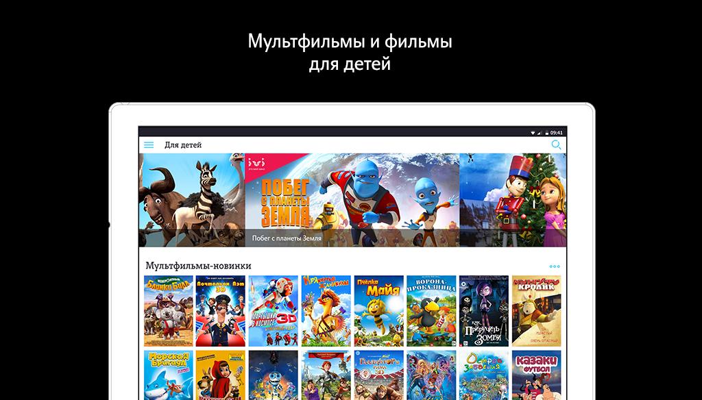 - широкий каталог отечественной и зарубежной мультипликации в разделе «Для детей»