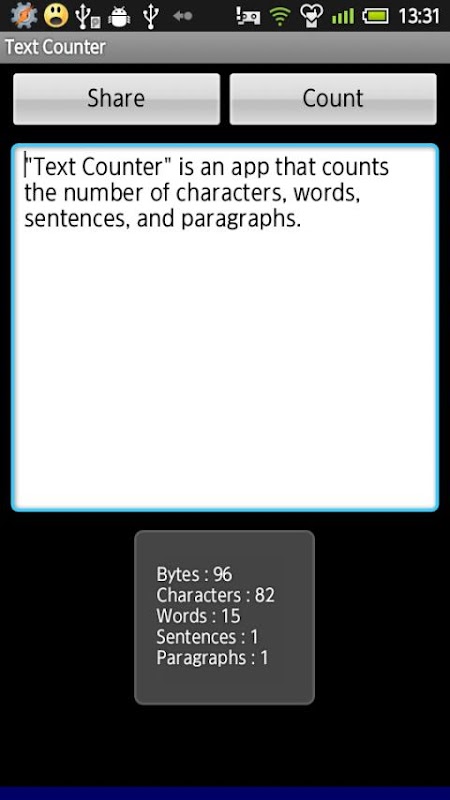 "Text Counter" is an app that counts the number of characters, words, sentences, and paragraphs.