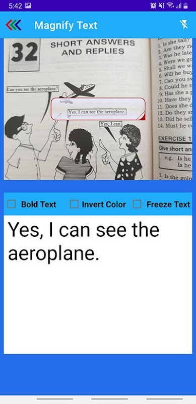 ٹیکسٹ میگنیفائر میں اسکرین فونٹ بڑا کرنے والا آسان آپریشن کے لیے ہے۔ آپ منفی موڈ بھی استعمال کر سکتے ہیں ، رنگوں کو الٹ سکتے ہیں ، تاکہ آپ متن کو مختلف طریقے سے دیکھ سکیں جب انہیں دیکھنا مشکل ہو۔ ایک 'منجمد' فعالیت بھی ہے جو آپ کو متن کو زیادہ آرام سے پڑھنے میں مدد دے گی۔ ایک بار جب آپ متن کو منجمد کردیتے ہیں ، تو آپ اسے بعد میں پڑھ سکتے ہیں۔