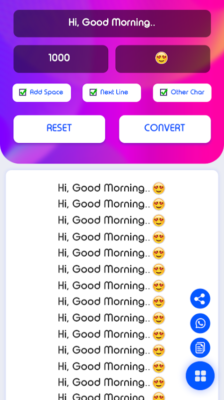 Text repeater for messages multiple times. Copy repeated message and share