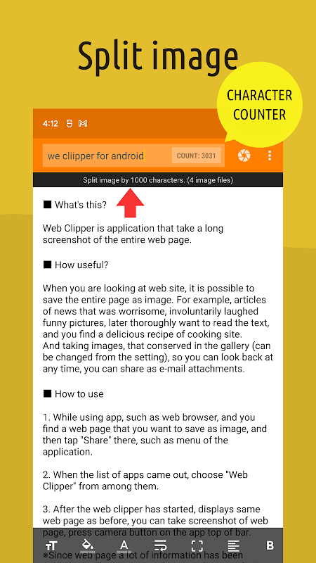 مثال کے طور پر، یہ ایک ایسی ایپلی کیشن ہے جو لمبے جملوں اور بڑے حروف کو تصویری فائلوں کے طور پر محفوظ اور بھیج سکتی ہے جب آپ SNS کو حروف کی حد یا معمول سے تھوڑا مختلف پیغام بھیجنا چاہتے ہیں۔