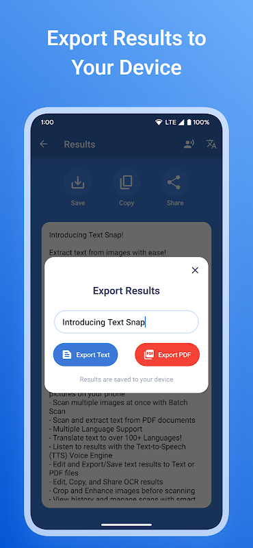 • ٹیکسٹ یا پی ڈی ایف فائلوں میں متن کے نتائج میں ترمیم اور برآمد/محفوظ کریں۔