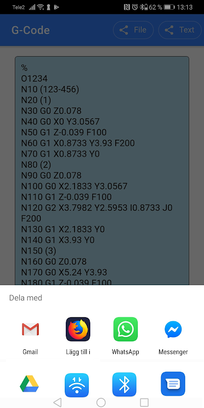 THIS APP NEEDS INTERNET ACCESS TO CALCULATE THE CNC CODE!