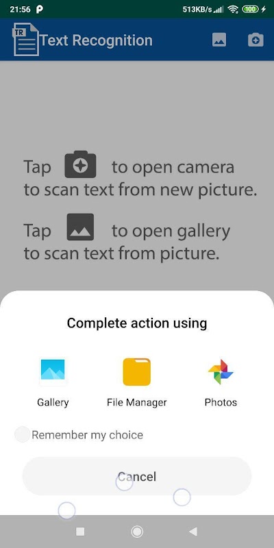 آپ اپنی گیلری سے ایک تصویر منتخب کرسکتے ہیں یا اصلی وقت میں تصویر کھینچ سکتے ہیں اور اسے آسان طریقے سے متن میں تبدیل کرسکتے ہیں۔