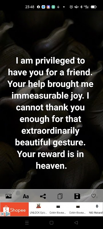 This is an App that stores many great thank you messages for help. I will continue adding new quotes timely. There are many thank you messages that you can send to anyone.