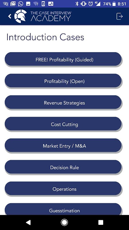 The Case Interview Academy is the first consolidated and coherent source of case interview training. Use videos, flashcards and an innovative dialog-based methodology to progressively learn case skills.