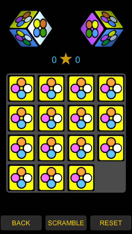The goal is to rotate the cubes until each one will end up with the same pattern.