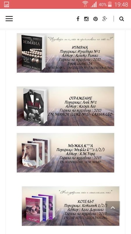 Блогът съдържа изцяло любителски преводи на книги, които не са издадени на български език.