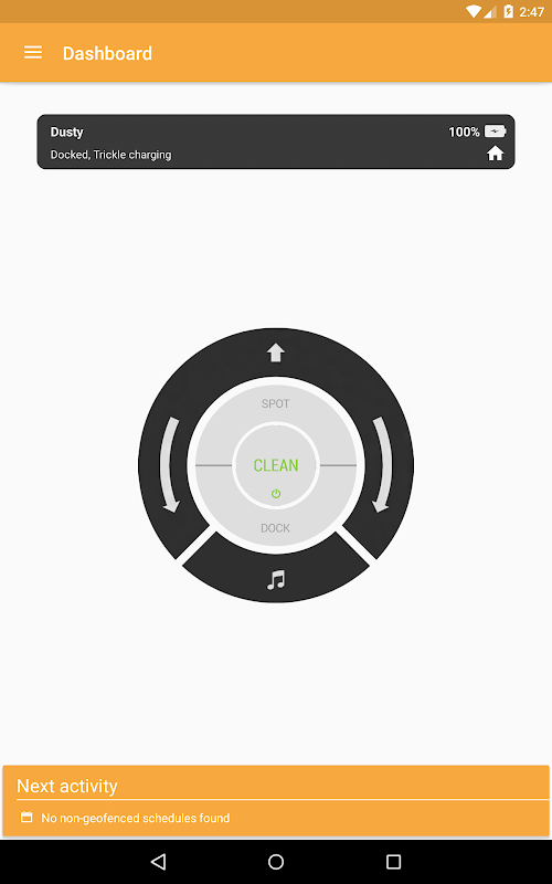 Thinking Cleaner lets you control your Roomba in different ways. You can start cleaning, dock or start spot cleaning from the dashboard. You can also direct-drive your Roomba, very handy for when it has ended up under that bed again!