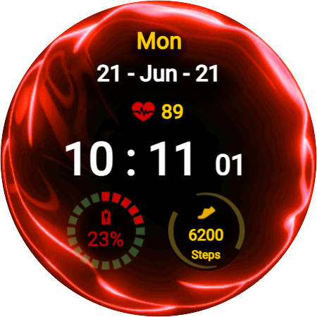 اینیمیٹڈ فلوڈ تھیم کے ساتھ Wear OS کے لیے سادہ ڈیجیٹل واچ فیس۔ گھڑی کے چہرے پر ایک نظر کے ساتھ، آپ اہم معلومات (تاریخ، وقت، دل کی دھڑکن کی شرح، قدموں کی تعداد، اور بیٹری کا فیصد) دیکھ سکیں گے۔ متحرک پس منظر ایک ٹھنڈا اثر پیدا کرتا ہے جو آپ کو دوسروں سے الگ کر دے گا۔ مزید برآں، متحرک پس منظر کا رنگ اور بیٹری کے اشارے کا رنگ بیٹری کے فیصد کے مطابق بدلتا ہے جس سے آپ کو تفصیلات پر توجہ دیے بغیر فوری طور پر معلوم ہو جاتا ہے کہ آپ کی بیٹری کی سطح کہاں ہے۔ اسی طرح، جب آپ اپنے یومیہ ہدف تک پہنچ جائیں گے تو قدموں کی تعداد سبز ہو جائے گی۔ یہ Wear OS کے لیے ڈیزائن کیے گئے اور آپ کے لیے ڈیزائن کیے گئے 12- اور 24 گھنٹے کے فارمیٹس کے ساتھ ہمیشہ ڈسپلے موڈ پر سپورٹ کرتا ہے۔