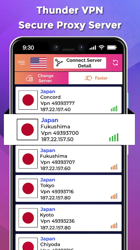 Thunder VPN-Secure Proxy Server application provide users to reach into blocked sites worldwide, unblock any social site and keep your browser activity safe & private with app. this apps are super and work with super high speed, now it's easy to unblock any sites with protecting your IP address while you are connected to any other countries VPN network. this application also allows users to get advantage to connect with multi servers like South Korea, Japan, USA, Colombia, Vietnam, Thailand, Venezuela, Brazil